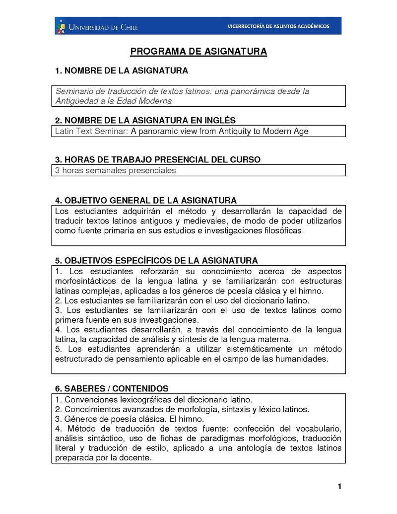 FHSF220-1 Traducción de textos latinos: una panorámica desde la Antiguedad a la Edad Moderna 2015, Segundo Semestre