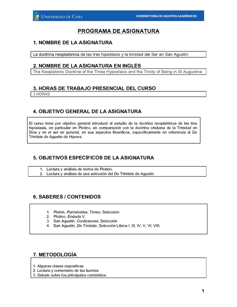 FHSF227-1 La doctrina neoplatónica de las tres hipóstasis y la trinidad del Ser en San Agustín 2015, Segundo Semestre