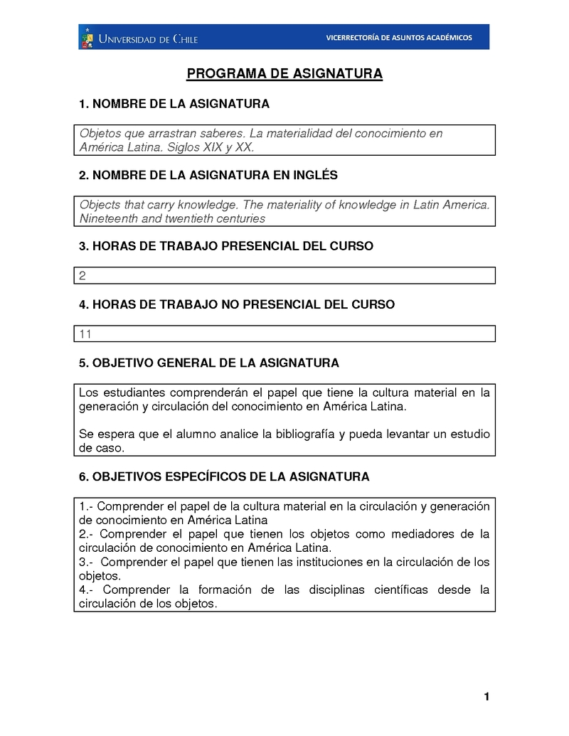FH060449-1 Objetos que arrastran saberes. La materialidad del conocimiento en América Latina. Siglos XIX y XX. 2016, Primer Semestre