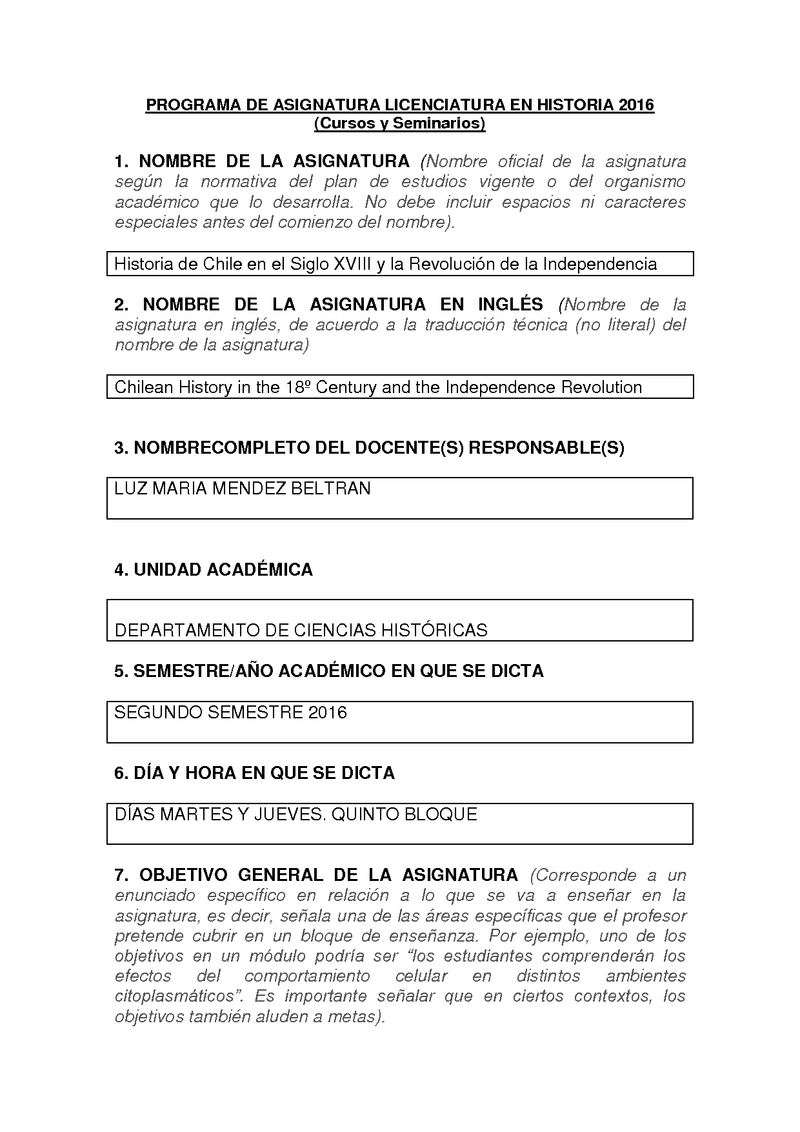 386300413-1 Historia de Chile en el Siglo XVIII y la Rev. de la Independencia 2016, Segundo Semestre