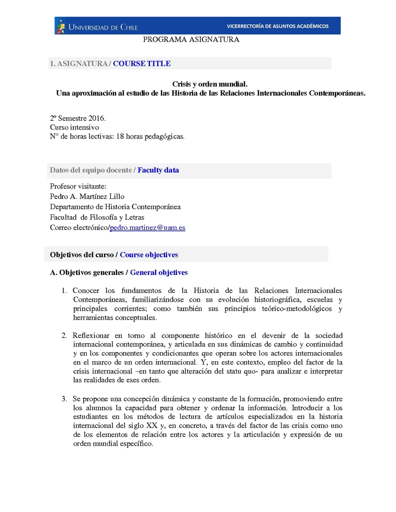 FH060488-1 Crisis y orden mundial. Una aproximación al estudio de la historia de las relaciones internacionales contemporáneas. 2016, Segundo Semestre
