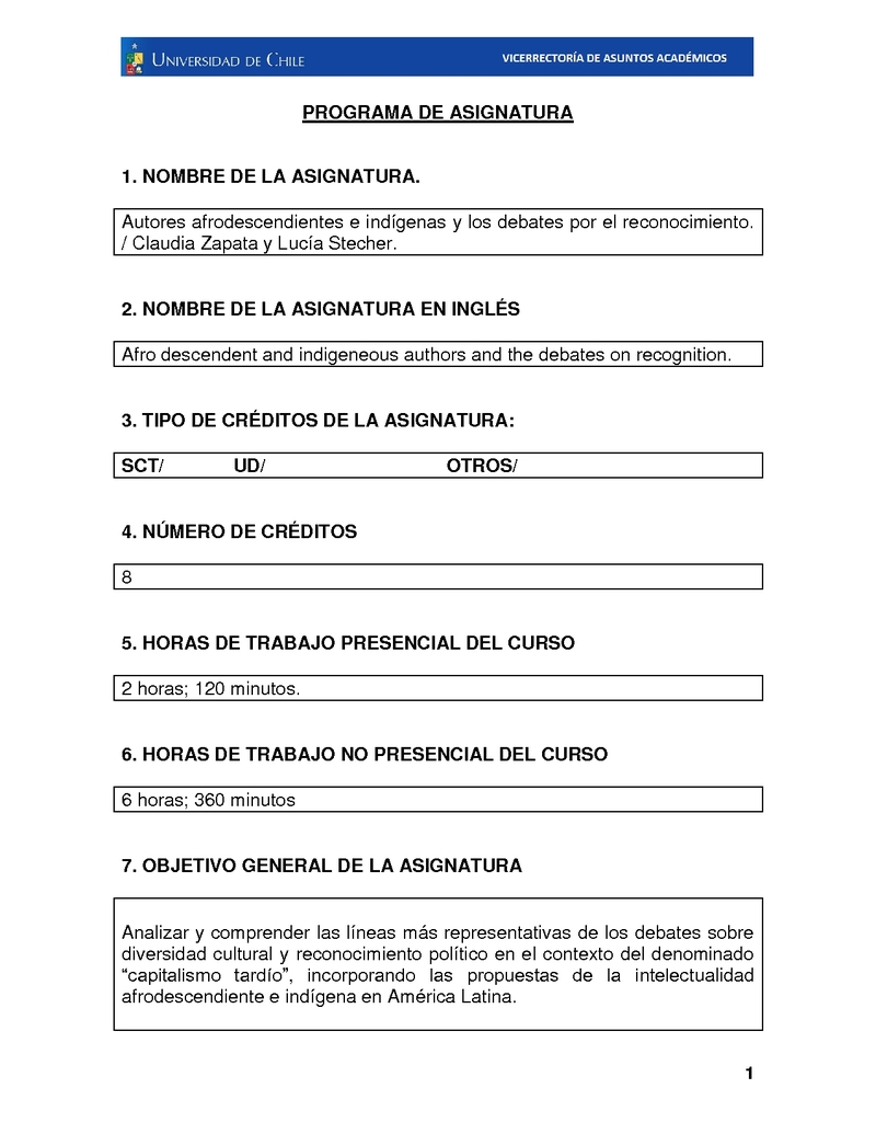 FH150049-1 Autores afrodescendientes e indígenas y los debates por el reconocimiento 2016, Segundo Semestre