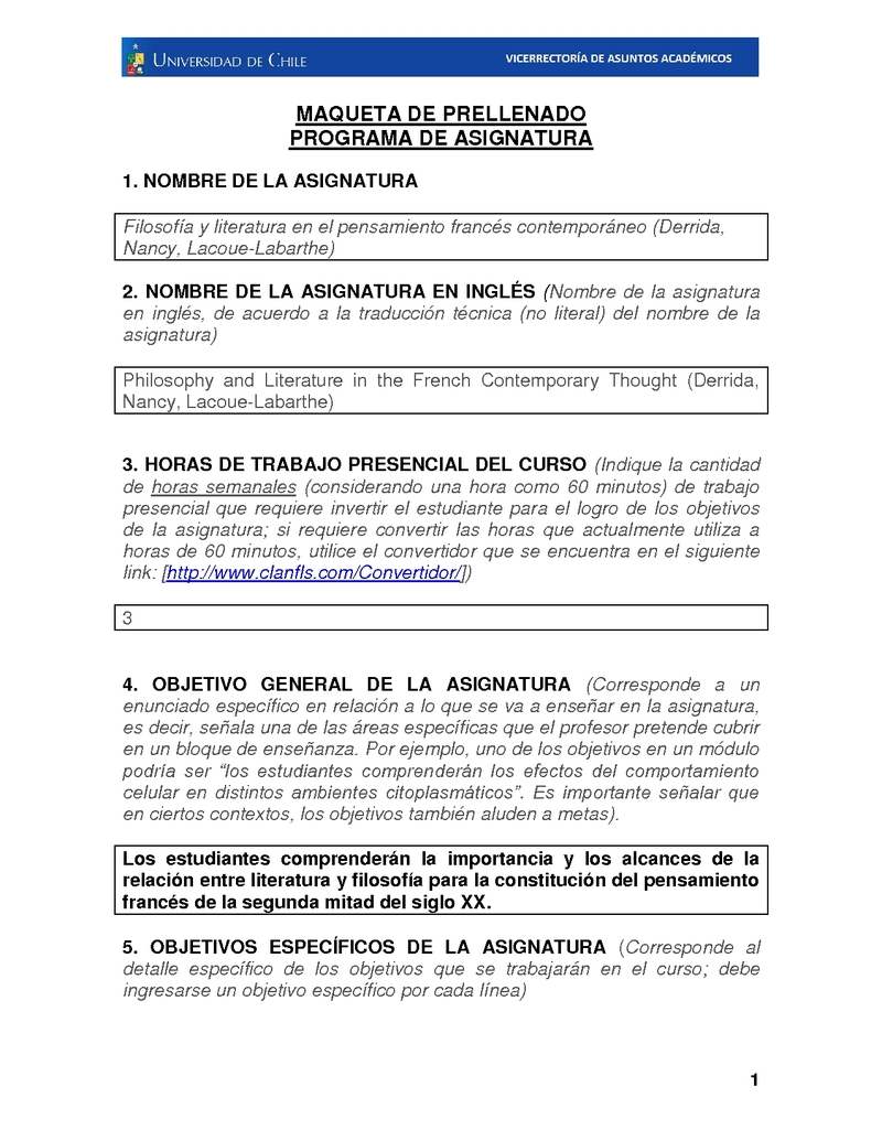 FHSF253-1 Filosofía y Literatura en el pensamiento francés contemporáneo (Derrida, Nancy, Lacoue-Labarthe) 2016, Segundo Semestre
