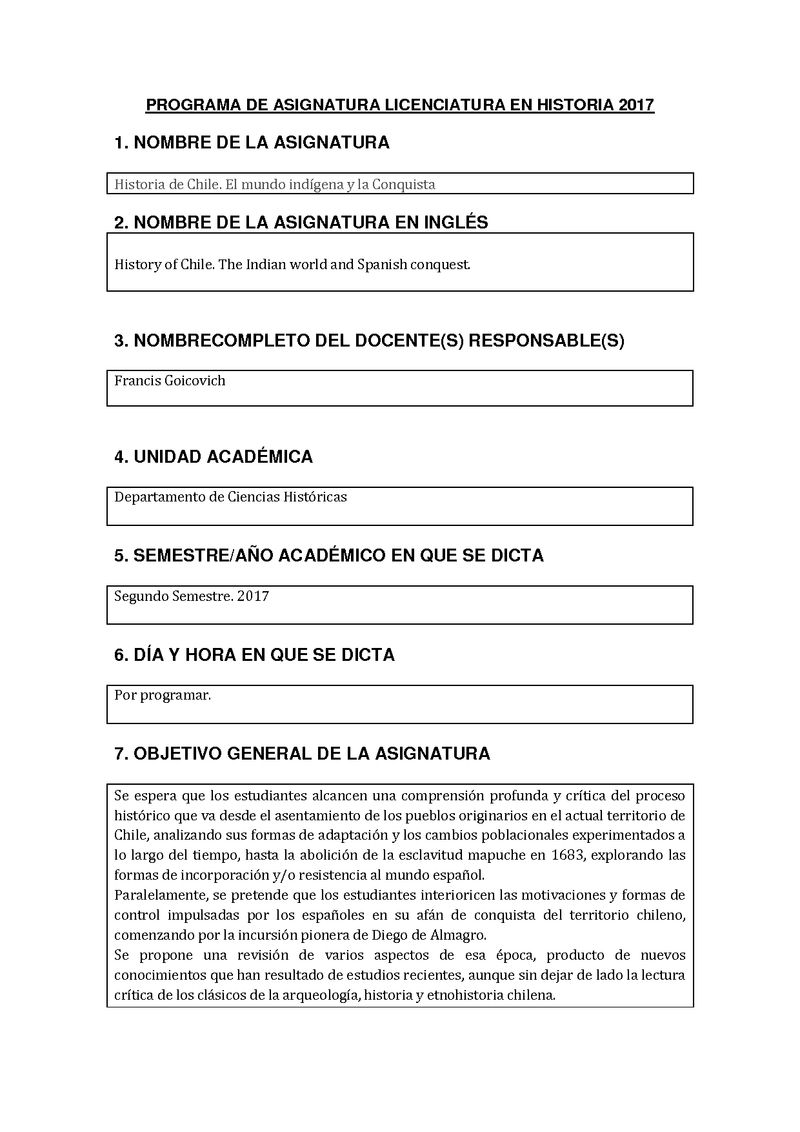 386300208-1 Historia de Chile: el Mundo Indígena y la Conquista (S. XVI) 2017, Segundo Semestre
