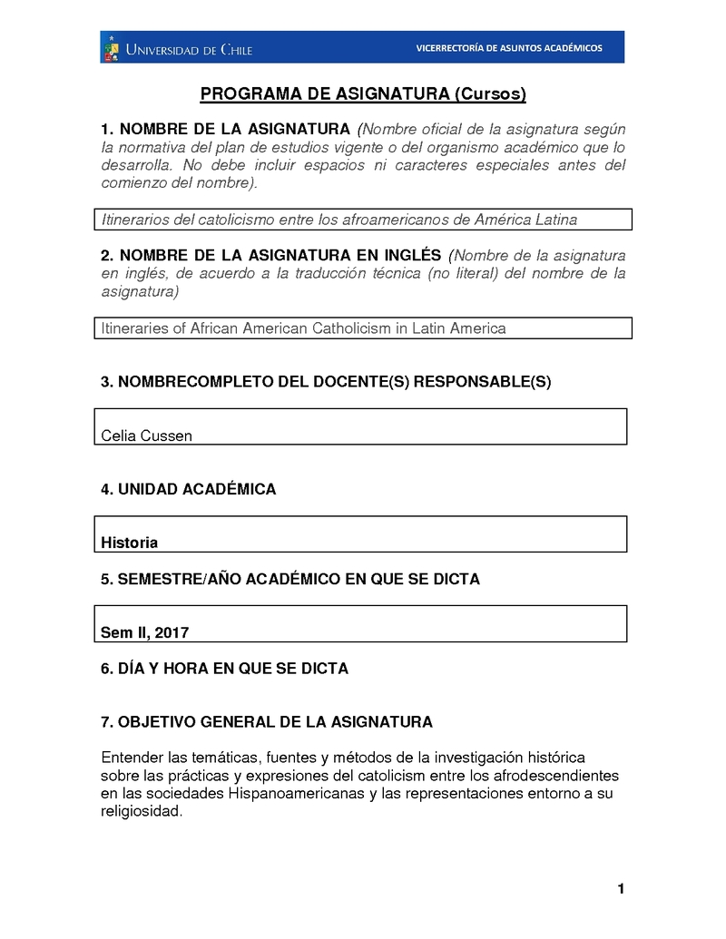 386301SE270-1 Itinerarios del Catolicismo entre los Afroamericanos de América Latina 2017, Segundo Semestre