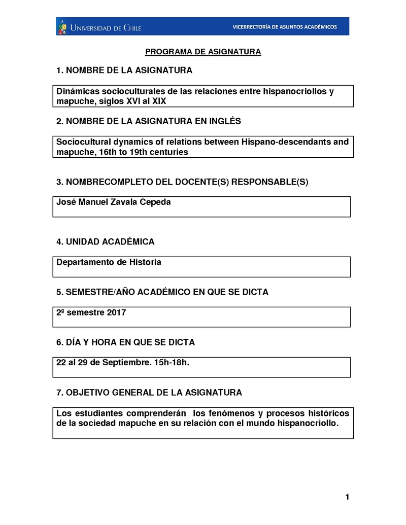 FH060557-1 Dinámicas socioculturales de las relaciones entre hispanocriollos y mapuche, siglos XVI al XIX 2017, Segundo Semestre