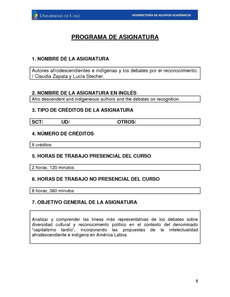 FH150049-1 Autores afrodescendientes e indígenas y los debates por el reconocimiento 2017, Segundo Semestre