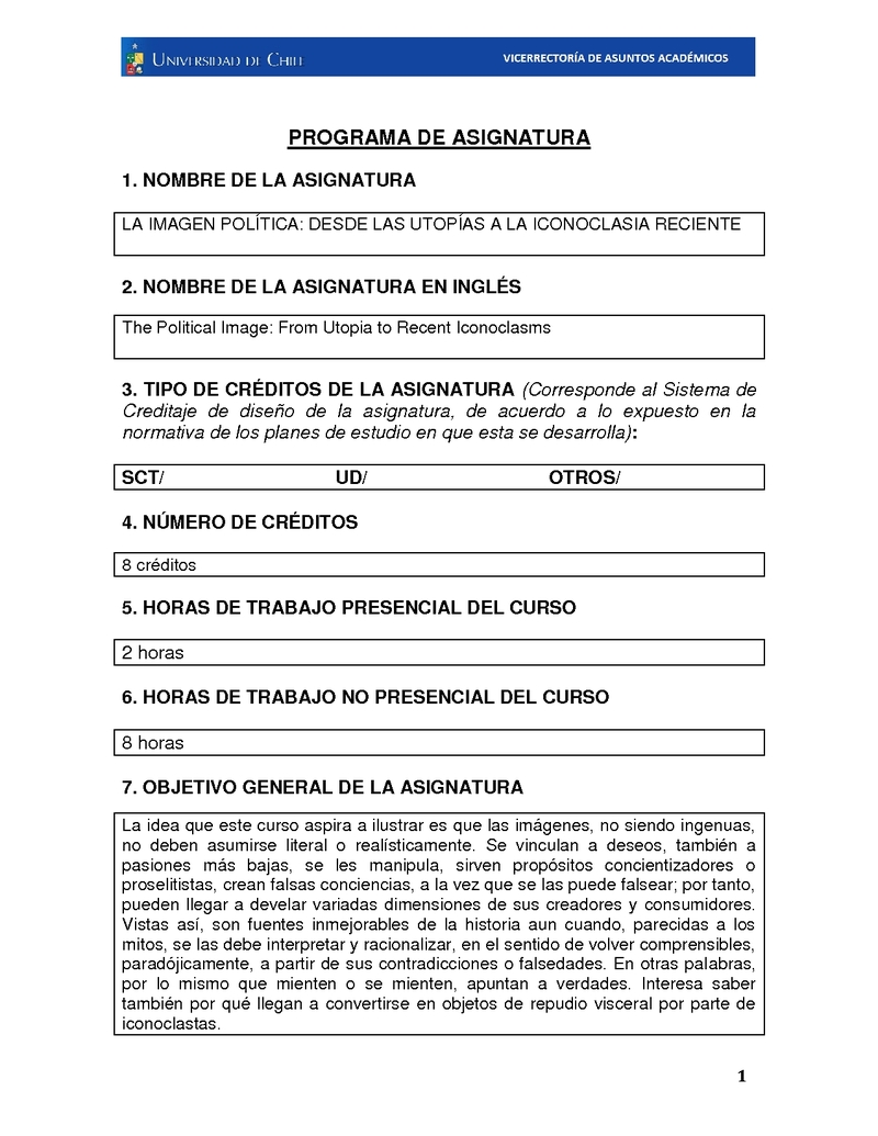 FH150155-1 La imagen política: desde las utopías a la iconoclasia reciente 2017, Segundo Semestre