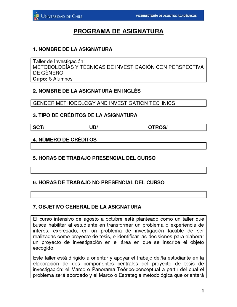FH060496-1 Taller de Investigación: Metodologías y técnicas de investigación con perspectiva de género 2018, Segundo Semestre
