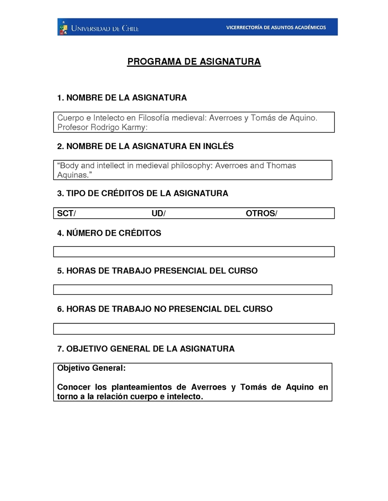 FH060622-1 Cuerpo e Intelecto en Filosofía medieval: Averroes y Tomás de Aquino 2018, Segundo Semestre