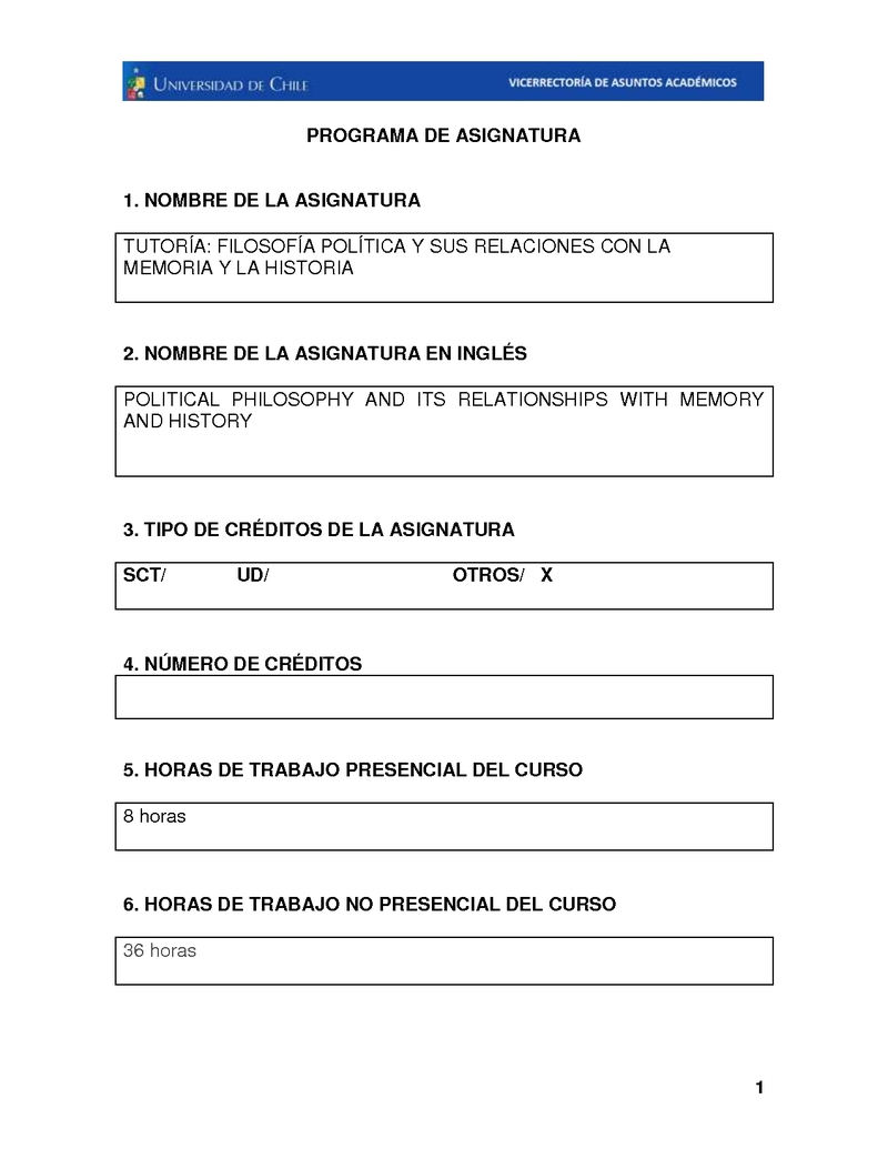 FH060632-1 Tutoría: Filosofía Política y sus relaciones con la memoria y la historia 2018, Segundo Semestre