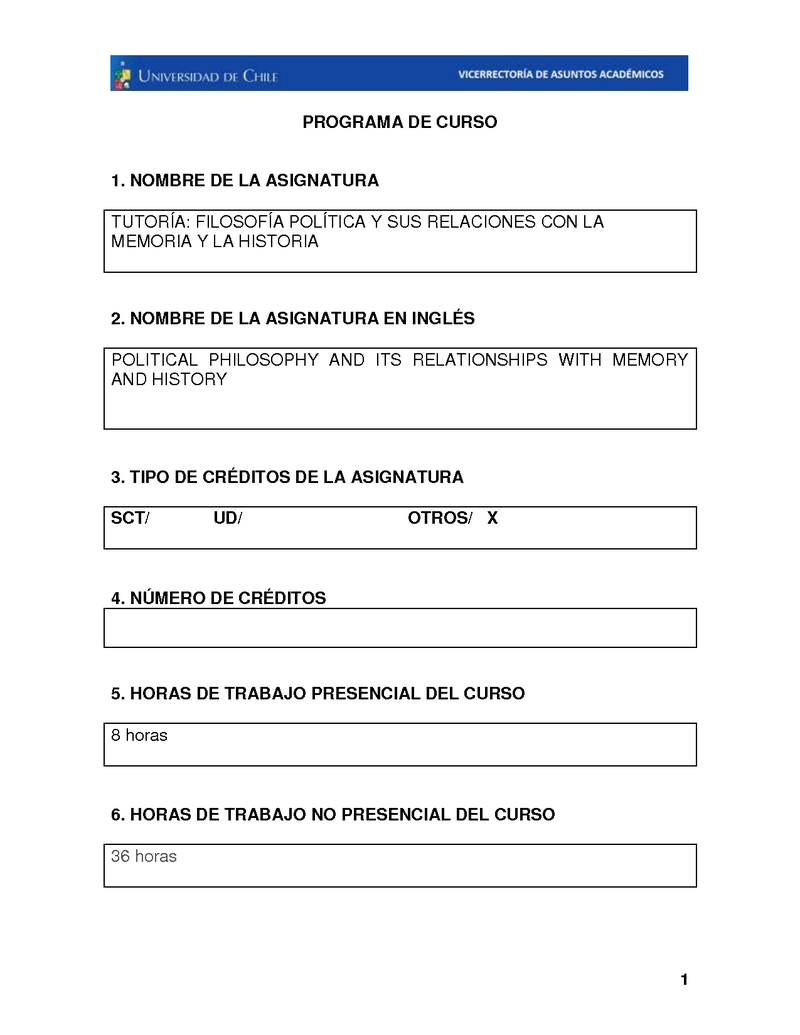 FH060636-1 Tutoría: Filosofía Política y sus relaciones con la memoria y la historia 2018, Segundo Semestre