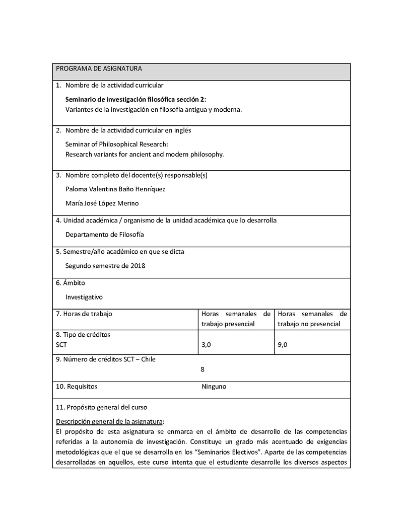 FIL06022-1 Seminario de Investigaciones Filosóficas: (área de historia de la filosofía) Variantes para la investigación en Filosofía Antigua y Moderna 2018, Segundo Semestre