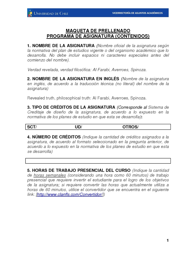 FILS018-1 Verdad revelada, verdad filosófica: Al Farabi, Averroes, Spinoza 2018, Segundo Semestre