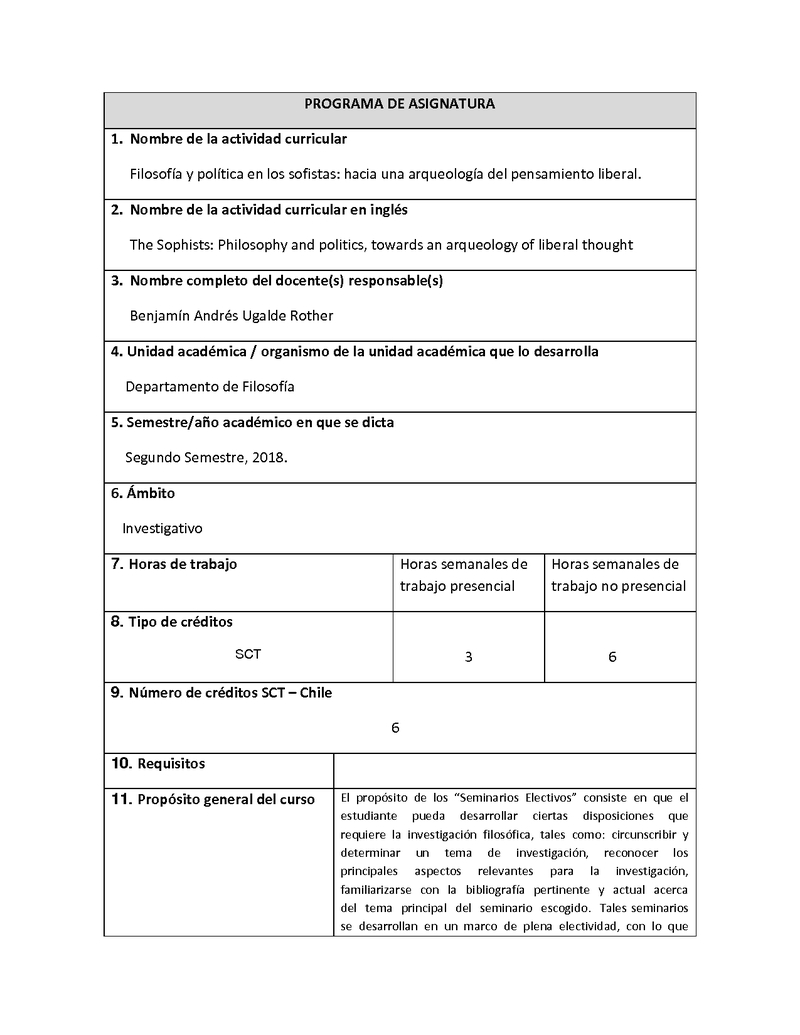 FILS026-1 "Filosofía y política en los sofistas: hacia una arqueología del pensamiento liberal" 2018, Segundo Semestre
