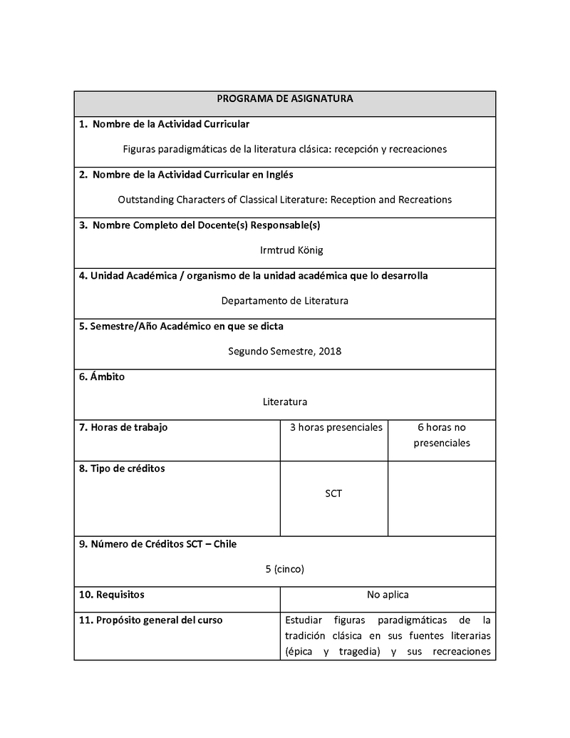 HISPLG005-1 Figuras paradigmáticas de la literatura clásica: recepción y reescritura 2018, Segundo Semestre