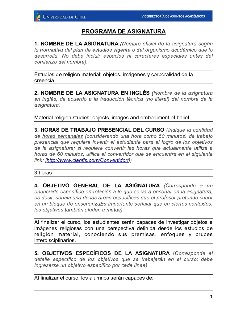 386301SE349-1 Estudios de la Religión Material: objetos, imágenes y corporalidad de la creencia. 2019, Segundo Semestre
