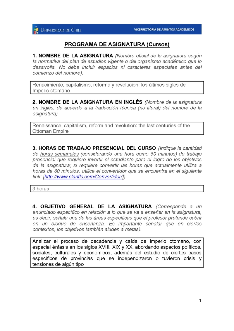 386301SE352-1 Renacimiento, Capitalismo, Reforma y Revolución: los últimos Siglos del Imperio Otomano. 2019, Segundo Semestre