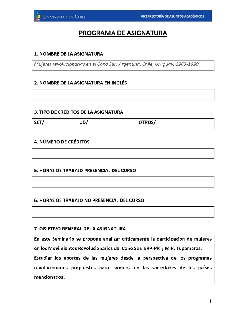 FH060685-1 Mujeres revolucionarias en el Cono Sur: Argentina, Chile, Uruguay, 1960 - 1990. 2019, Segundo Semestre