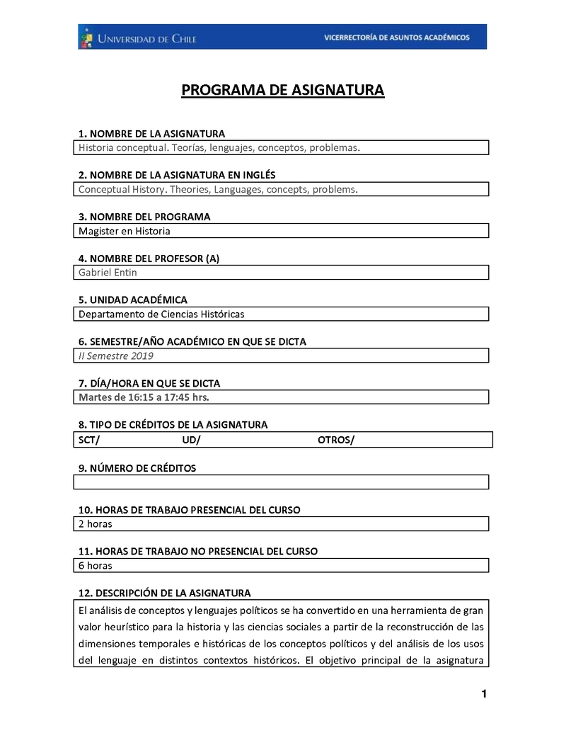 FH060700-1 Historia conceptual. Teorías, lenguajes, conceptos, problemas. 2019, Segundo Semestre