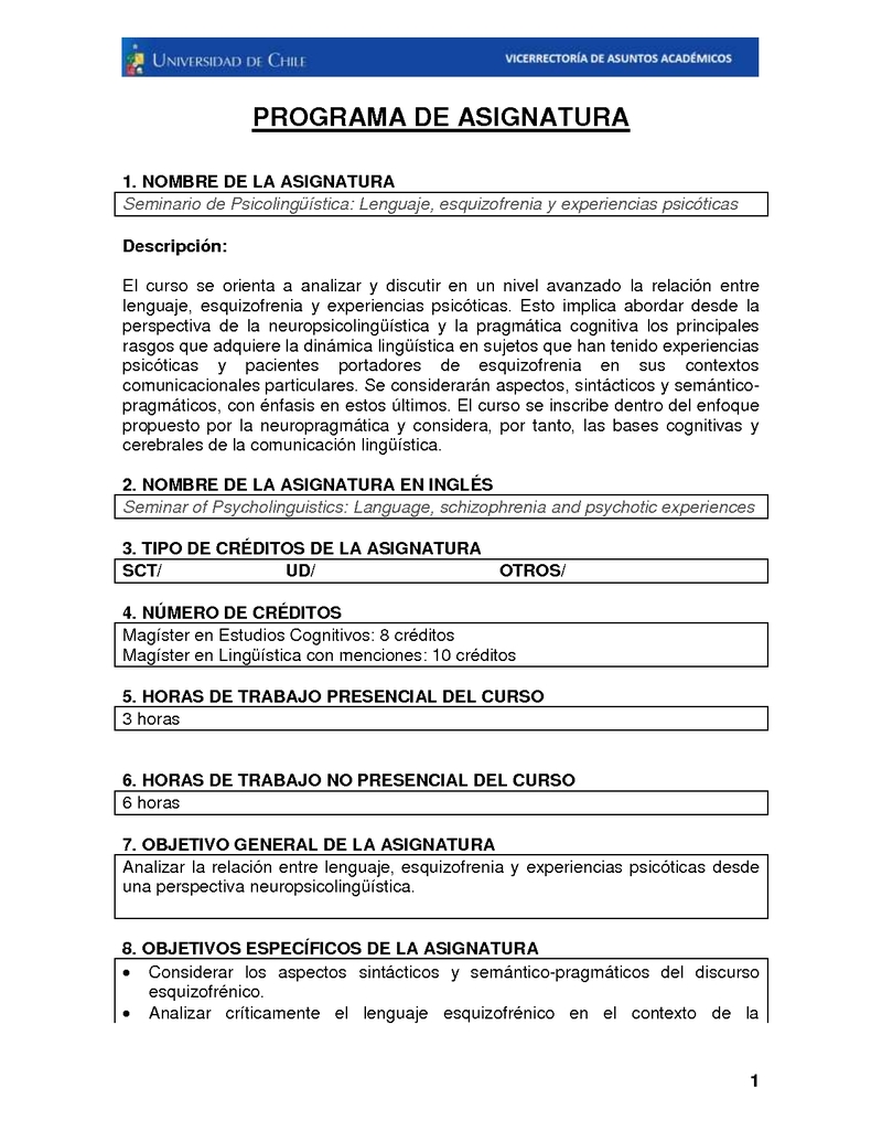 FH150221-1 Seminario de Psicolingüística: Lenguaje, esquizofrenia y experiencias psicóticas 2019, Segundo Semestre