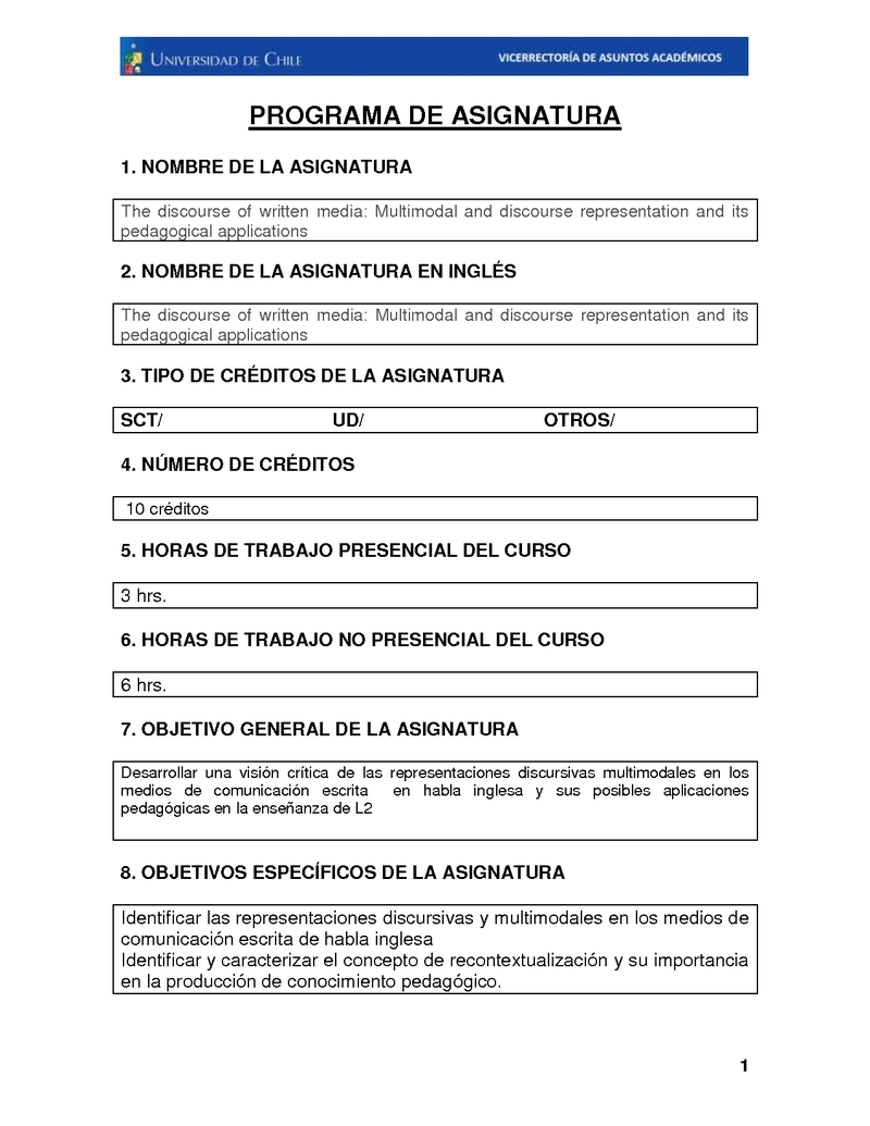 FH150317-1 The discourse of written media: Multimodal and discourse representation and its pedagogical applications 2019, Segundo Semestre