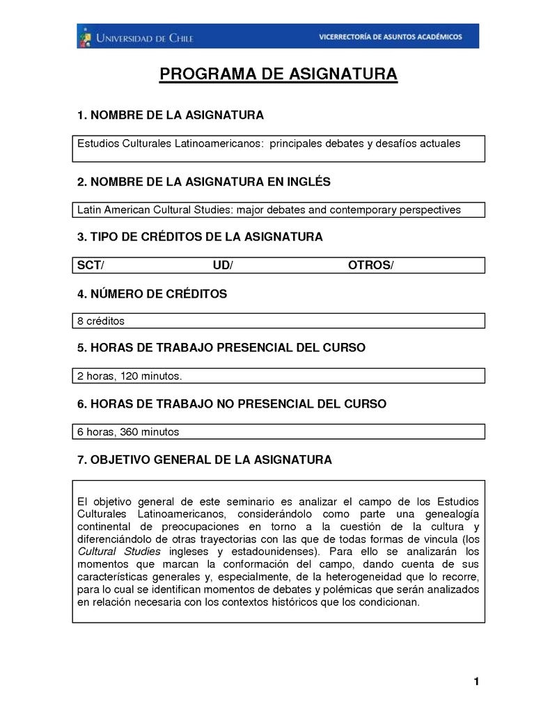 FH150319-1 Estudios Culturales Latinoamericanos: principales debates y desafíos actuales 2019, Segundo Semestre
