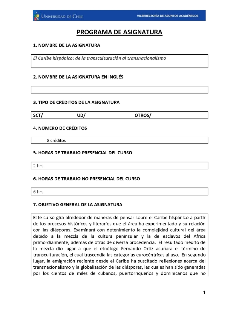 FH150325-1 El Caribe hispánico: de la transculturación al transnacionalismo. 2019, Segundo Semestre