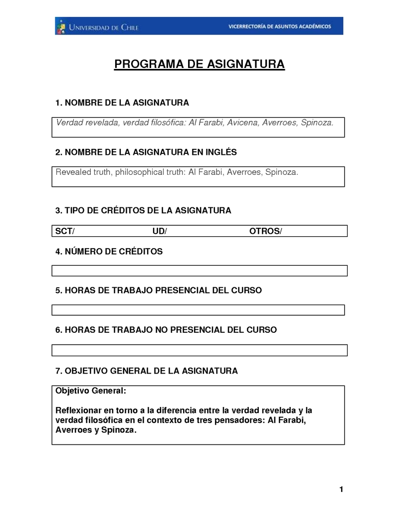 FH150372-1 Verdad revelada, verdad filosófica: Al Farabi, Avicena, Averroes, Spinoza. 2019, Segundo Semestre