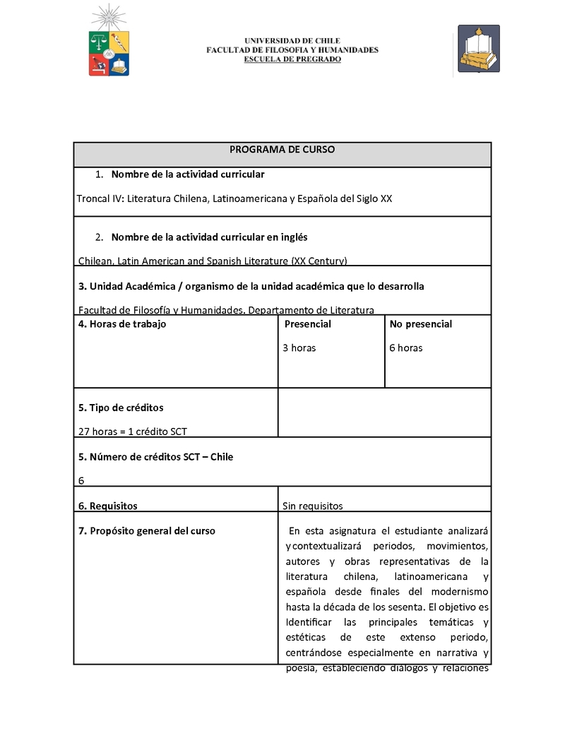 HISP0402-1 Literatura Chilena, Latinoamericana y Española del Siglo XX 2019, Segundo Semestre