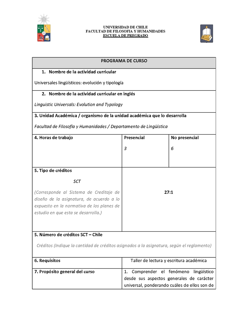 HISPEA003-1 Universales, Tipología y Evolución: Aproximaciones Formales y Funcionales 2019, Segundo Semestre
