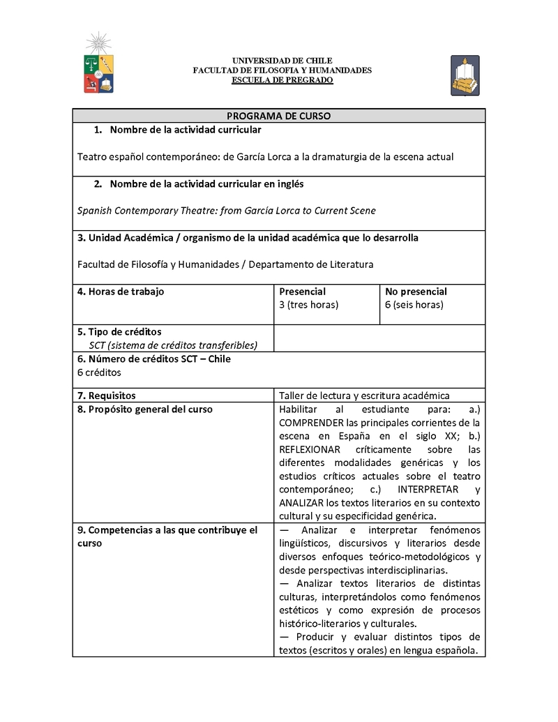 HISPLE0012-1 Teatro Español Contemporáneo: de García Lorca a la Dramaturgia de la escena actual 2019, Segundo Semestre