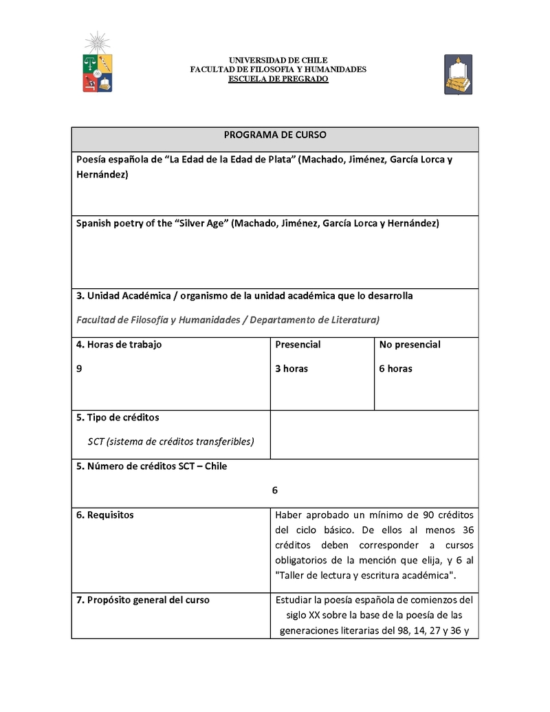 HISPLE014-1 Poesía española de "la Edad de la Edad de plata" (Machado, Jiménez, García Lorca y Hernández) 2019, Segundo Semestre