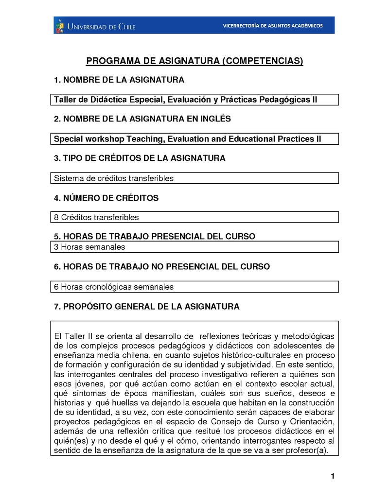 38280903-2 Taller de Didáctica Especial, Evaluación y Prácticas Pedagógicas 2020, Primer Semestre