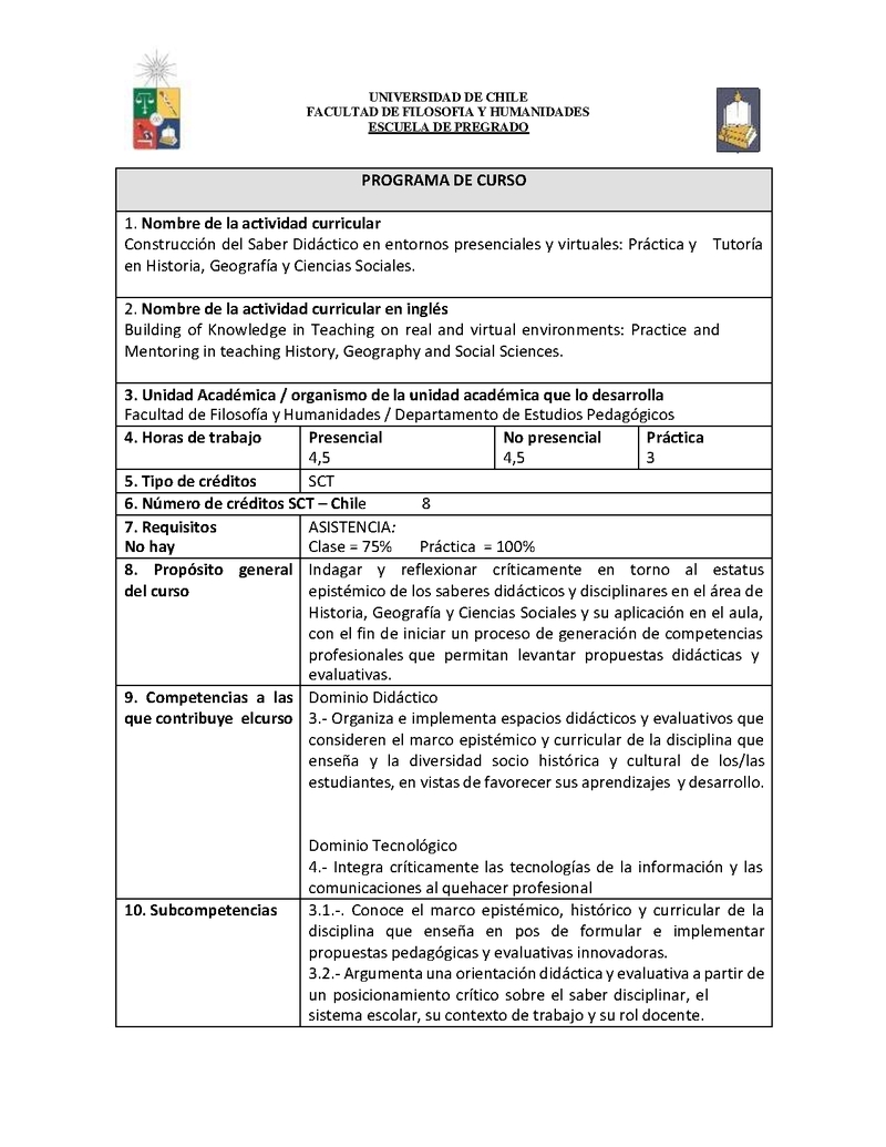387601026-2 Construcción del saber Didáctico en Entornos Presenciales y Virtuales; Práctica Historia y Geografía 2022, Primer Semestre