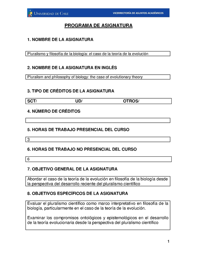 FH-DFIL02306-1 Tutoría: Pluralismo y filosofía de la biología: el caso de la teoría de la evolución 2022, Segundo Semestre