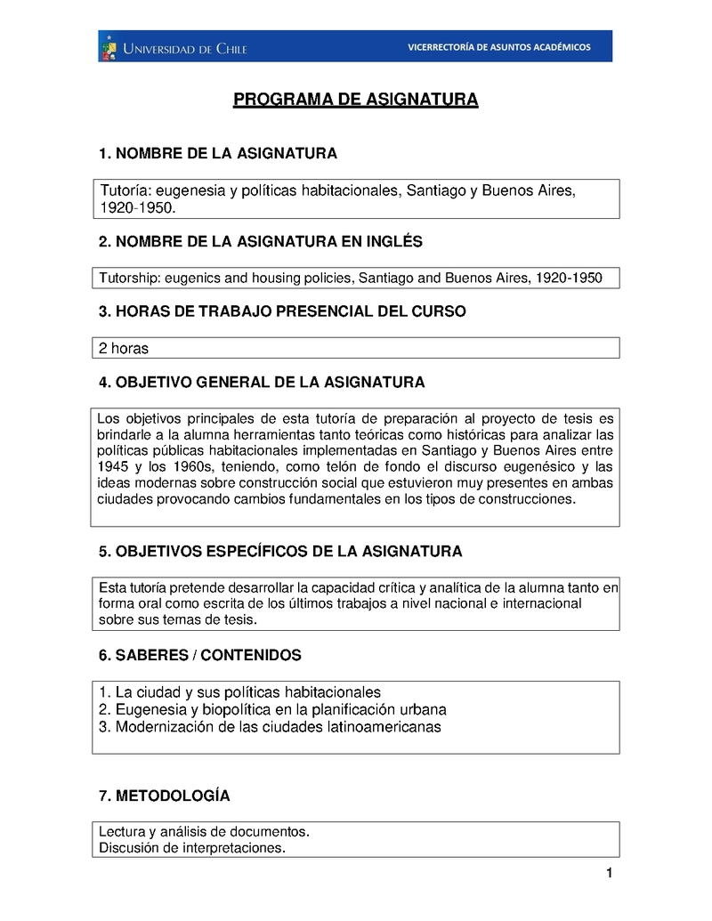 FH-DHIS02-008-1 Tutoría: "Eugenesia y Políticas habitacionales. Santiago y Buenos Aires, 1920 -1950" 2022, Segundo Semestre