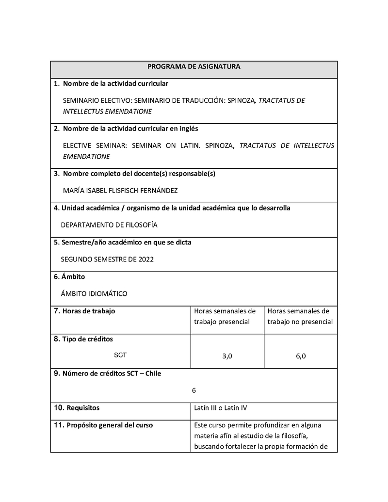 FILS124-1 Seminario Electivo: Seminario de traducción: Tratado del Entendimiento de Baruch Spinoza 2022, Segundo Semestre