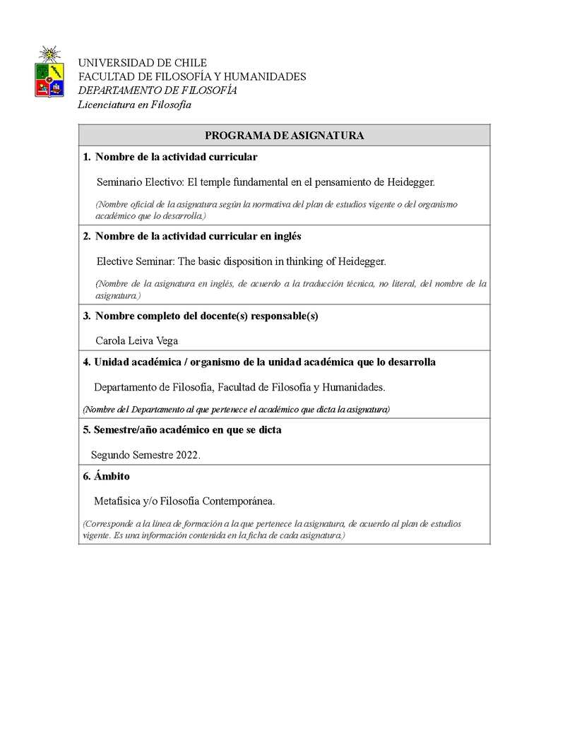 FILS163-1 Seminario Electivo: Los estados de ánimo en el pensamiento de Heidegger 2022, Segundo Semestre