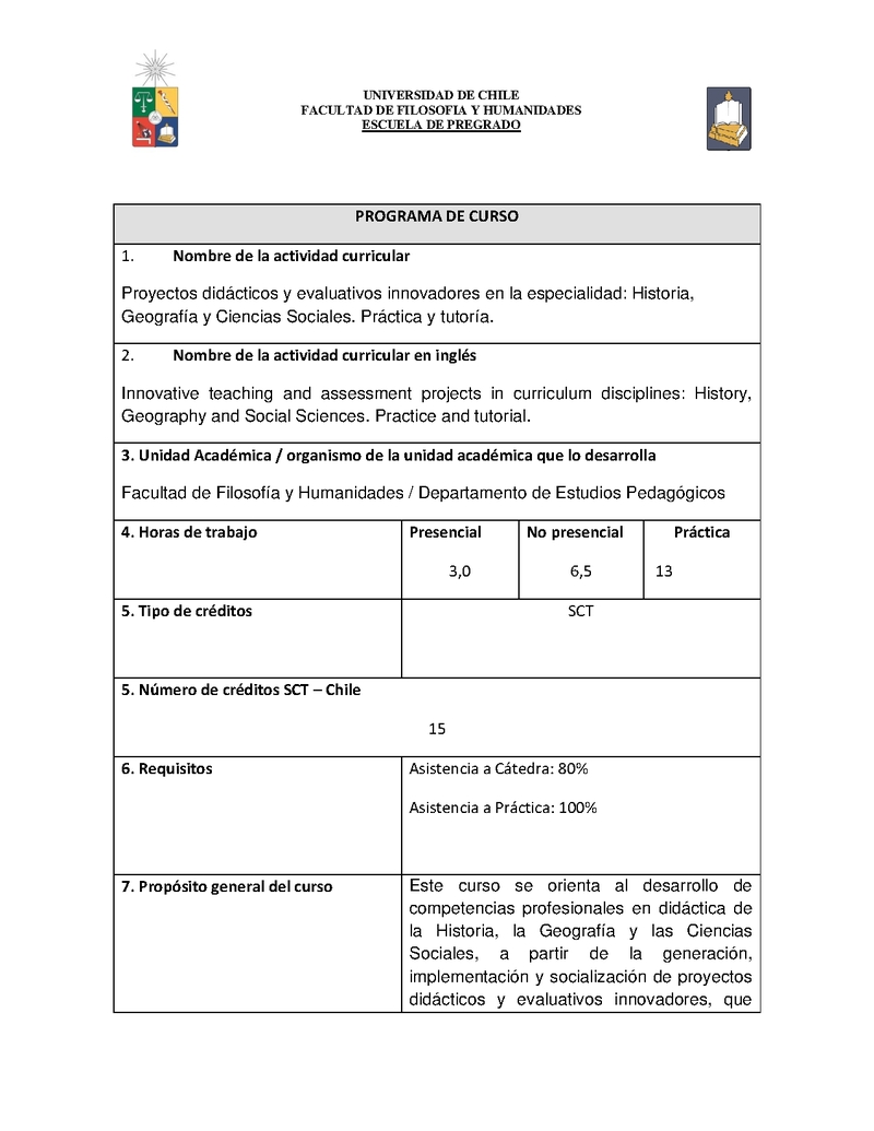 Proyectos Didácticos y Evaluativos Innovadores en la Especialidad: Práctica Historia y Geografía