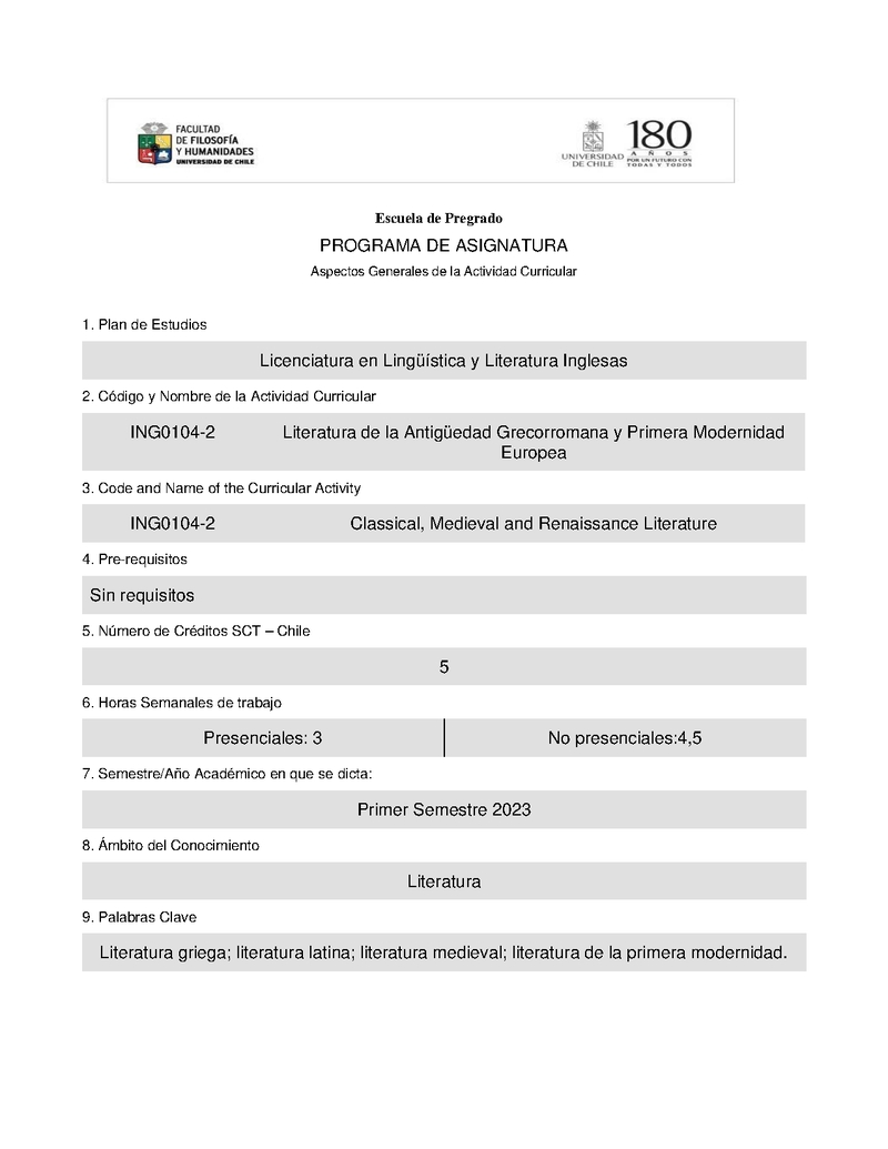 ING0104-2 Literatura de la Antigüedad Grecorromana y Primera Modernidad Europea 2023, Primer Semestre