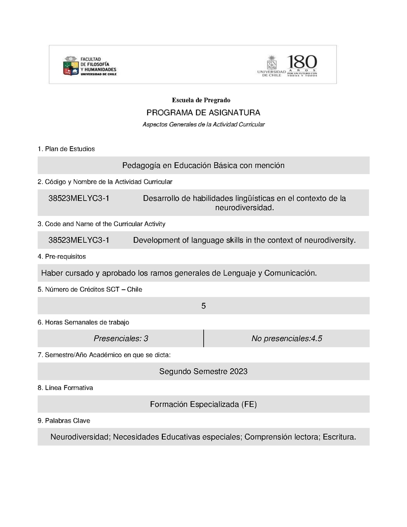 | Descripción | Programa Ramo "Desarrollo de habilidades lingüísticas en el contexto de la Neurodiversidad" | |