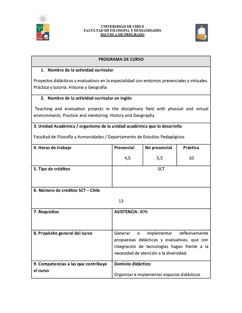 387602026-3 Proyectos Didácticos y Evaluativos en la Especialidad con Entornos Virtuales y Presenciales; Práctica Historia y Geografía 2023, Segundo Semestre