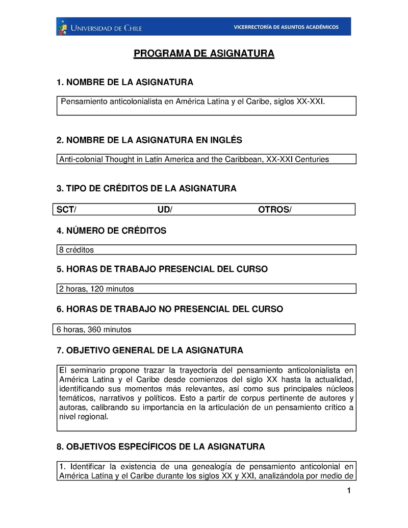 FH-DELA-0009-1 Pensamiento anticolonialista en América Latina y el Caribe, siglos XX-XXI. 2023, Segundo Semestre