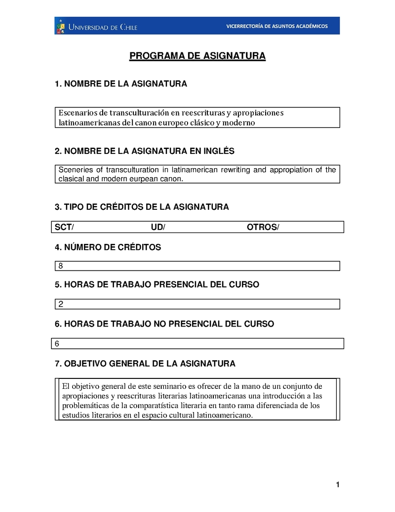 FH-DLIT-0011-1 Escenarios de transculturación en reescrituras y apropiaciones latinoamericanas del canon europeo clásico y moderno. 2023, Segundo Semestre