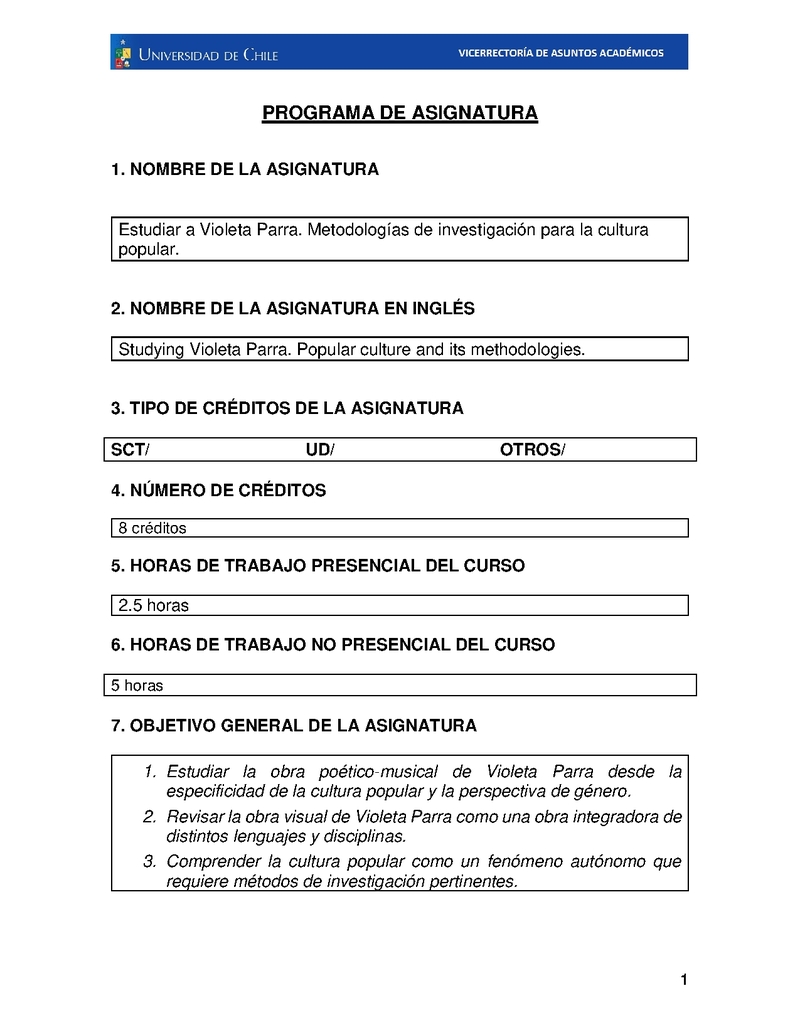FH-MLIT-0005-1 Estudiar a Violeta Parra. Metodologías de investigación para la cultura popular 2023, Segundo Semestre