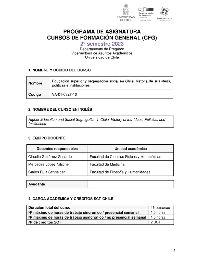VA-01-0327-10-1 Educación superior y segregación social en Chile: historia de sus ideas, políticas e instituciones 2023, Segundo Semestre