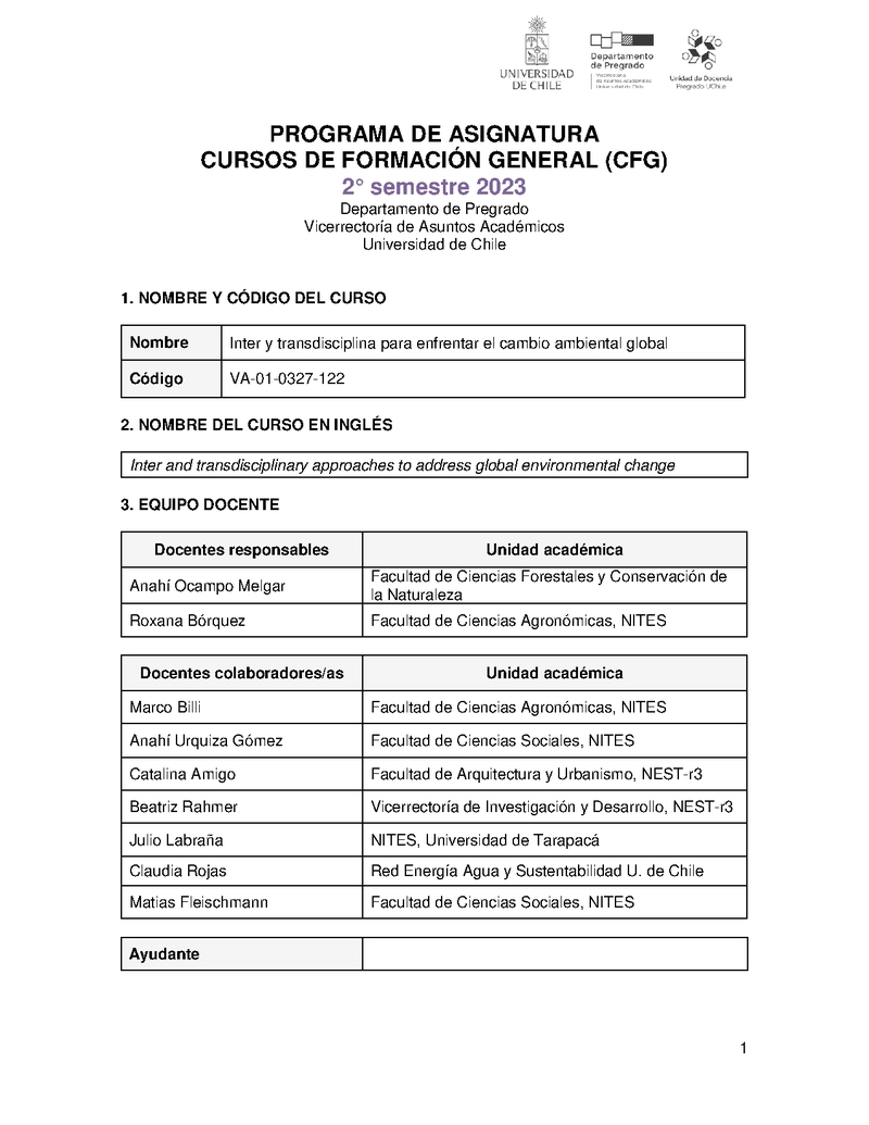 VA-01-0327-122-1 Inter y Transdisciplina para Enfrentar el Cambio Ambiental Global 2023, Segundo Semestre