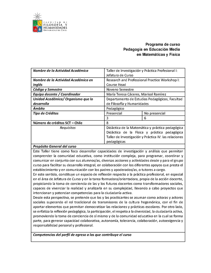 Taller de Investigación y Práctica Profesional I: Jefatura de Curso