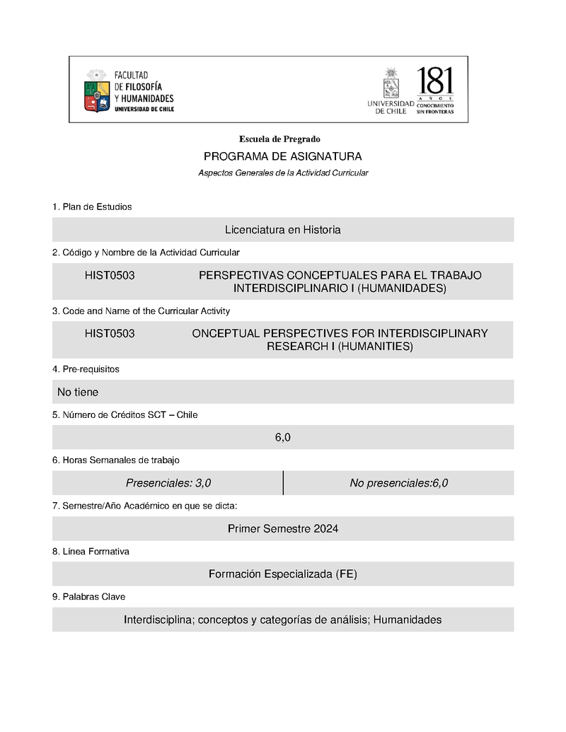 HIST0503-2 Perspectivas Conceptuales para el Trabajo Interdisciplinario I (Humanidades) 2024, Primer Semestre